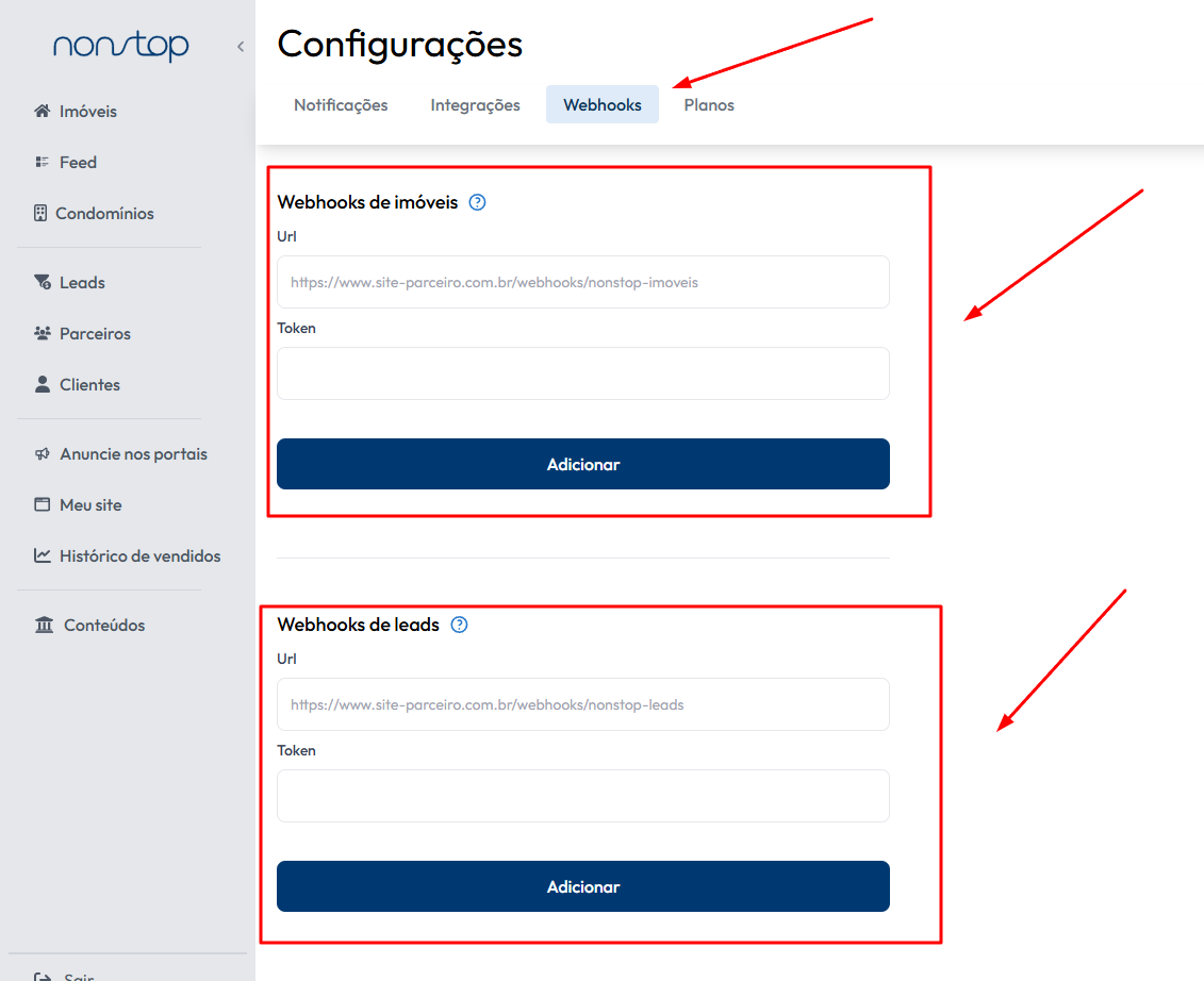 Para adicioná-los na Nonstop, acesse o link www.usenonstop.com/configuracoes?tab=webhook.