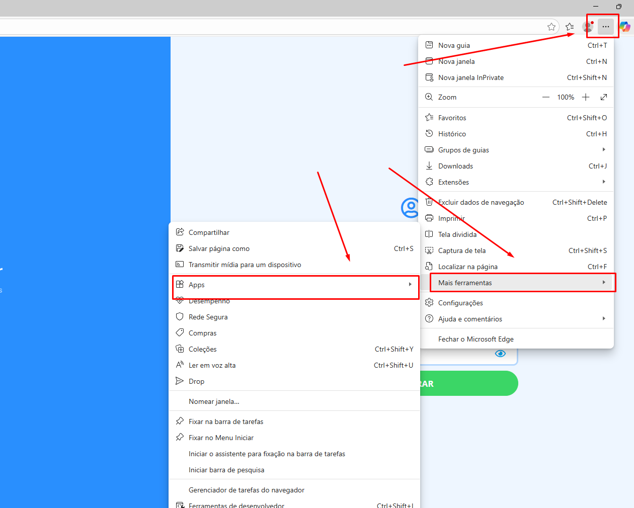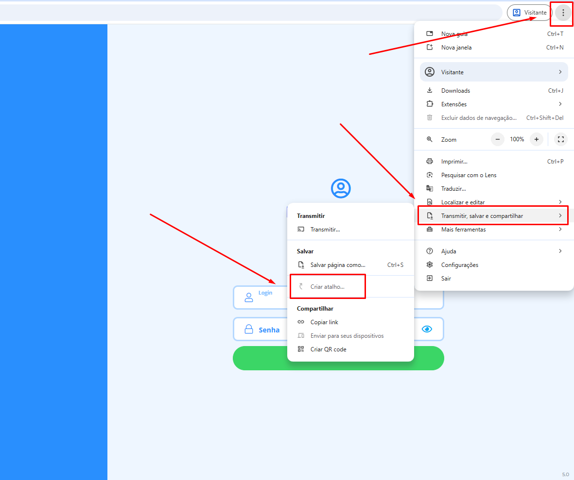 2. Quando a página carregar, clique no canto superior direito do navegador, nos três pontinhos (menu). Conforme o seu navegador, escolha uma das opções abaixo: