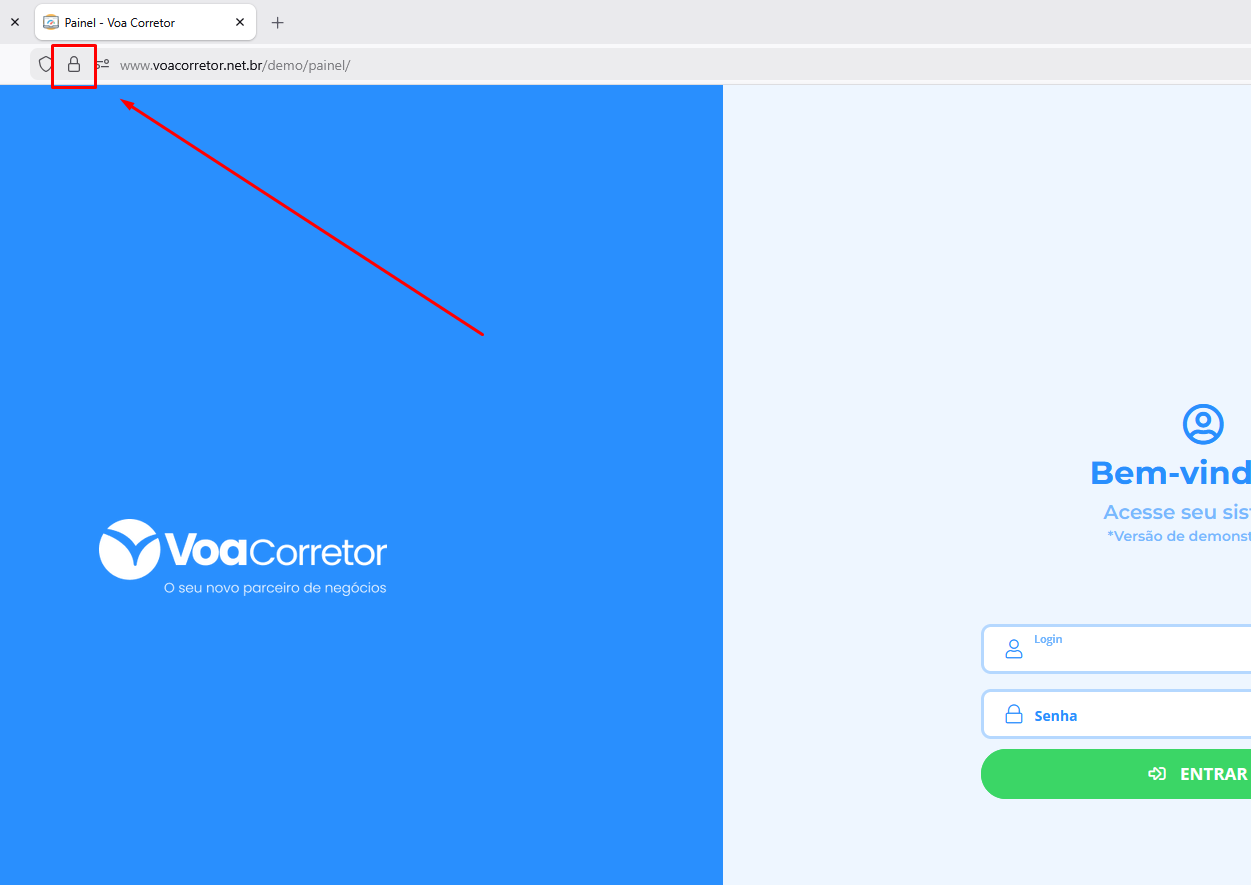 1. Abra o navegador de sua preferência (Chrome, Edge, Firefox, etc.) e acesse o link do seu painel, enviado no e-mail com os dados de acesso.